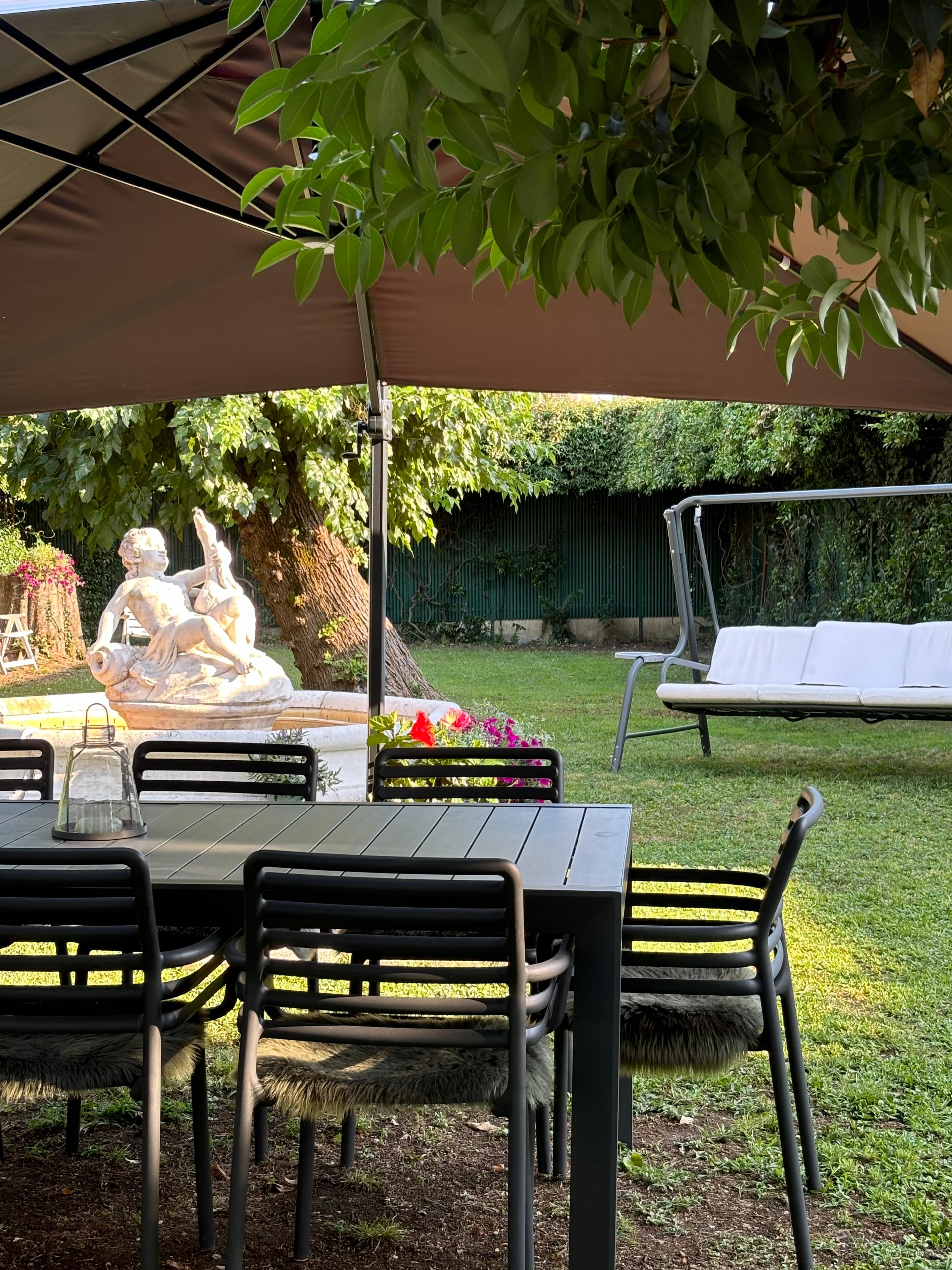 La villa è circondata da uno splendido giardino dove potersi rilassare e nelle belle giornate poter consumare la colazione.
